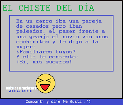 Małżeństwo jechało samochodem, ale kłócili się, mijając jakąś farmę, mąż zobaczył prosięta i powiedział do żony: „Twoi krewni?”