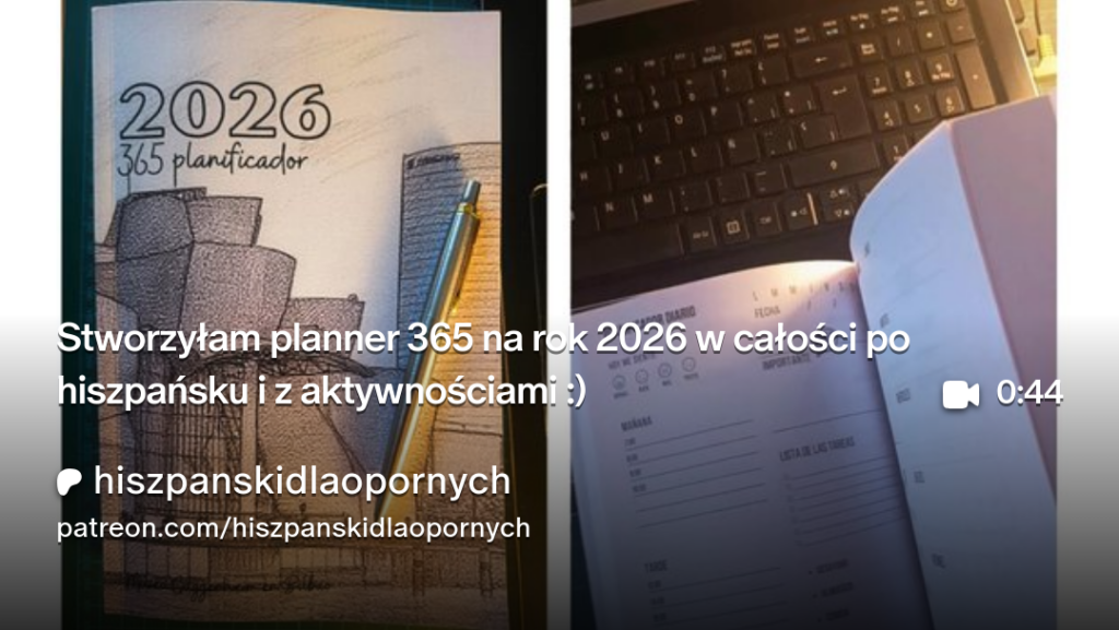 Dla tych z Was, którzy lubią planować na papierze stworzyłam planner na rok 2026 na wszystkie 365 dni, aby zmotywować Was do codziennej nauki i używania języka hiszpańskiego 🙂 Jest on dostępny na Amazonie w wersji z miękką i twardą okładką.